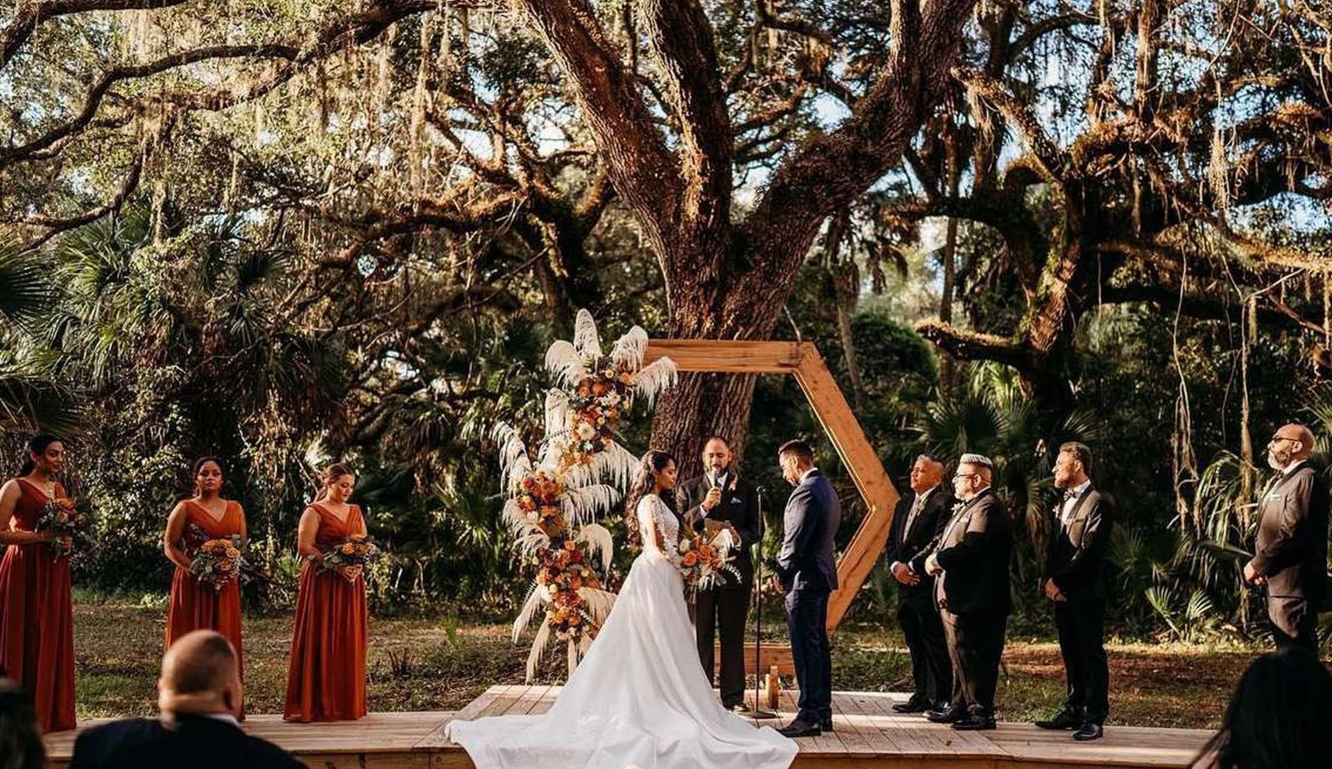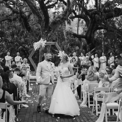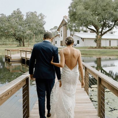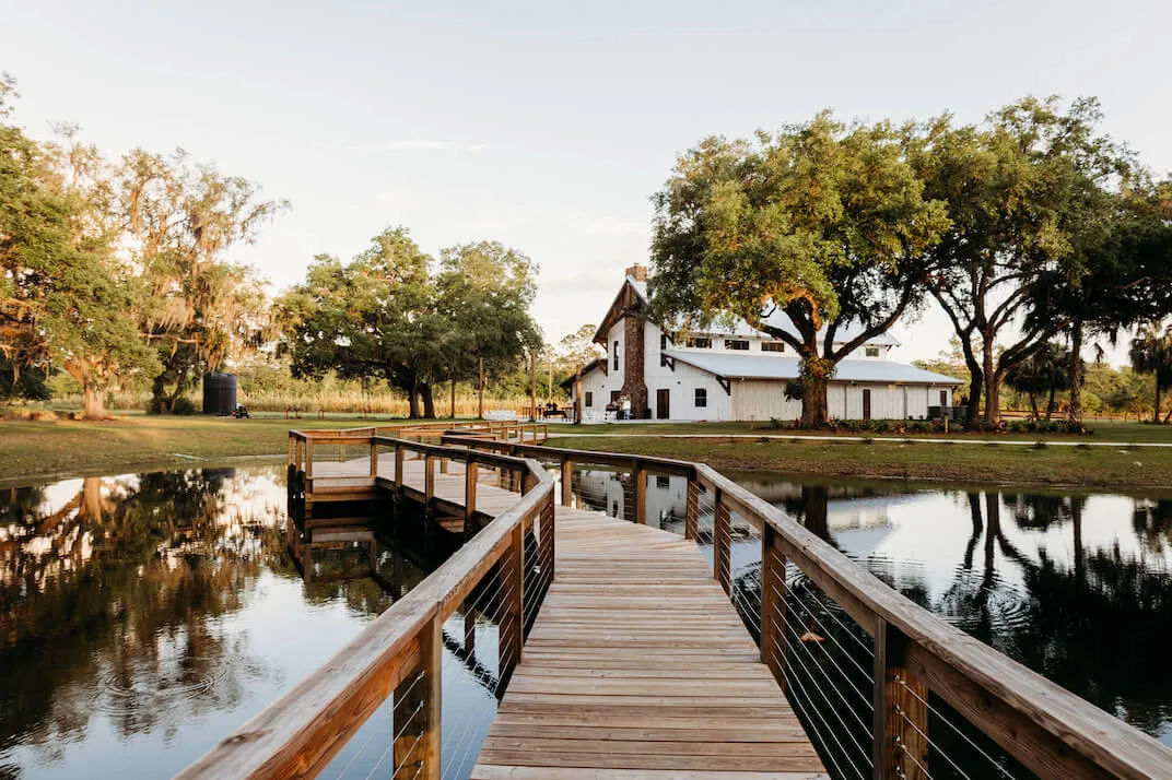 Sugar Grove Estate is set across 45 acres of lush Florida landscape, surrounded by a spring-fed lily pond, a flowering ceremony grove, private garden spaces, and an abundance of moss-draped oak trees that create a naturally romantic setting for celebrations of every season.