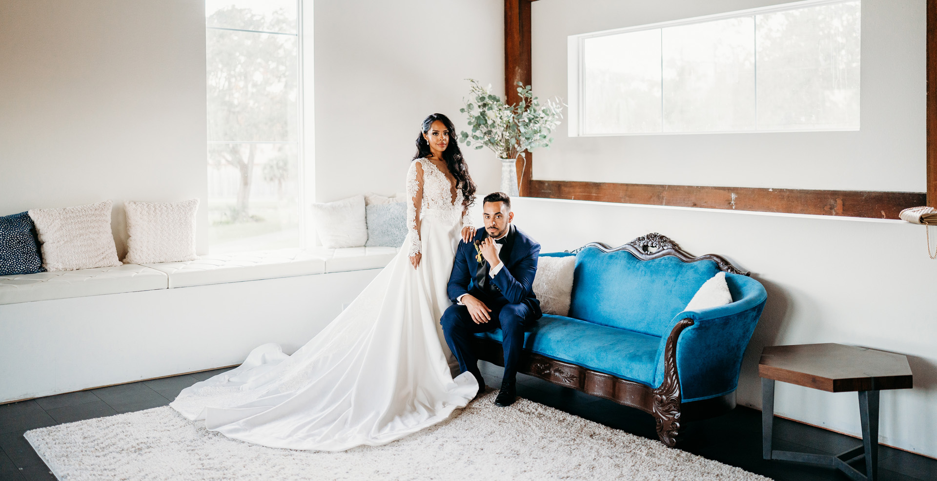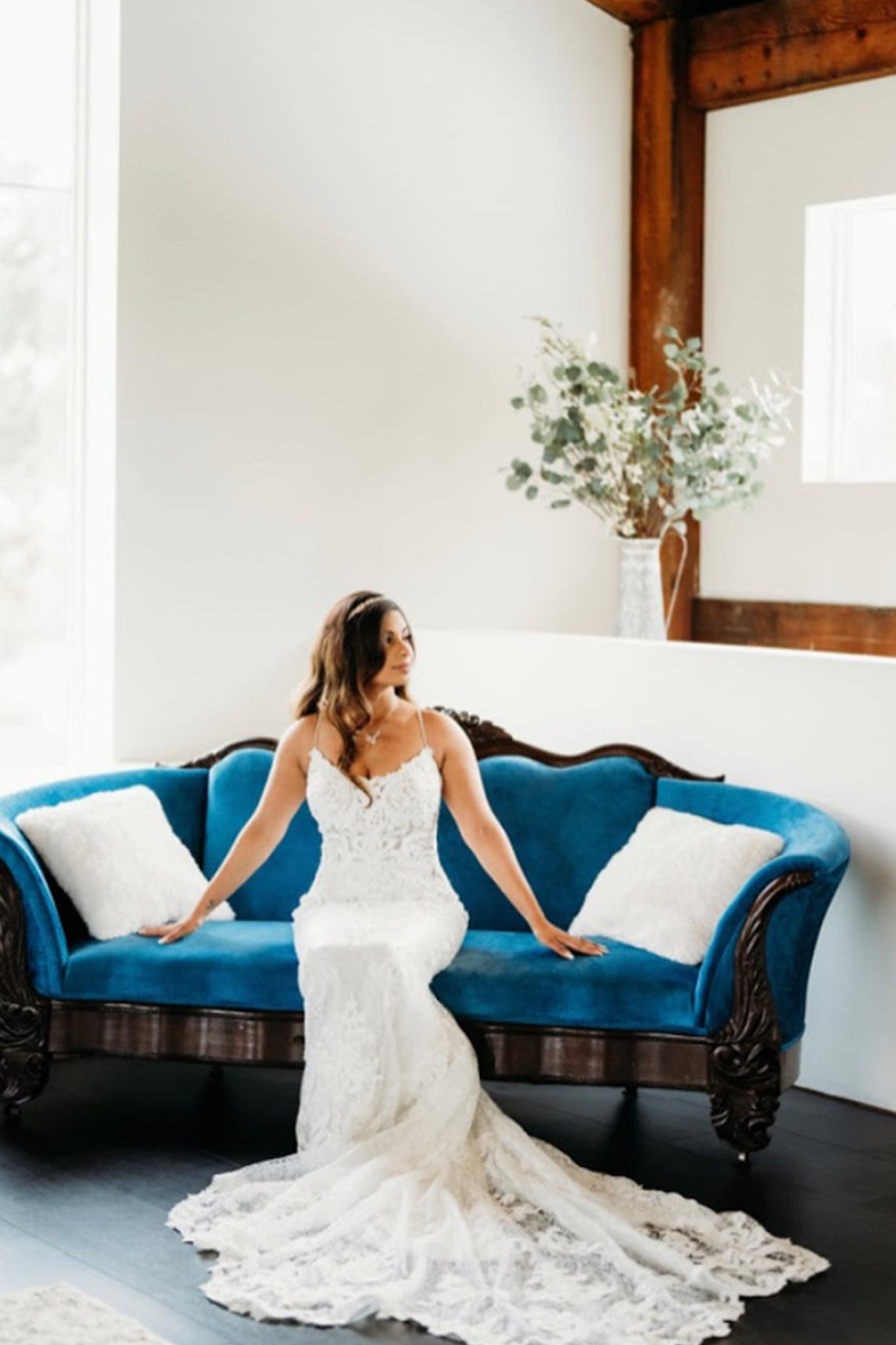 The stunning 1200 sq ft Bridal Suite is filled with natural light and provides a beautiful space for the Bride and Bridesmaids to prepare hair & makeup, take photos, and make wonderful memories. Key features include a private restroom with shower, full-length mirrors, an 8 ft makeup counter, and a gorgeous blue antique settee. The sliding barn door to the Bridal Suite also acts as the perfect place to stage a ‘first touch’ or 'first look' moment.