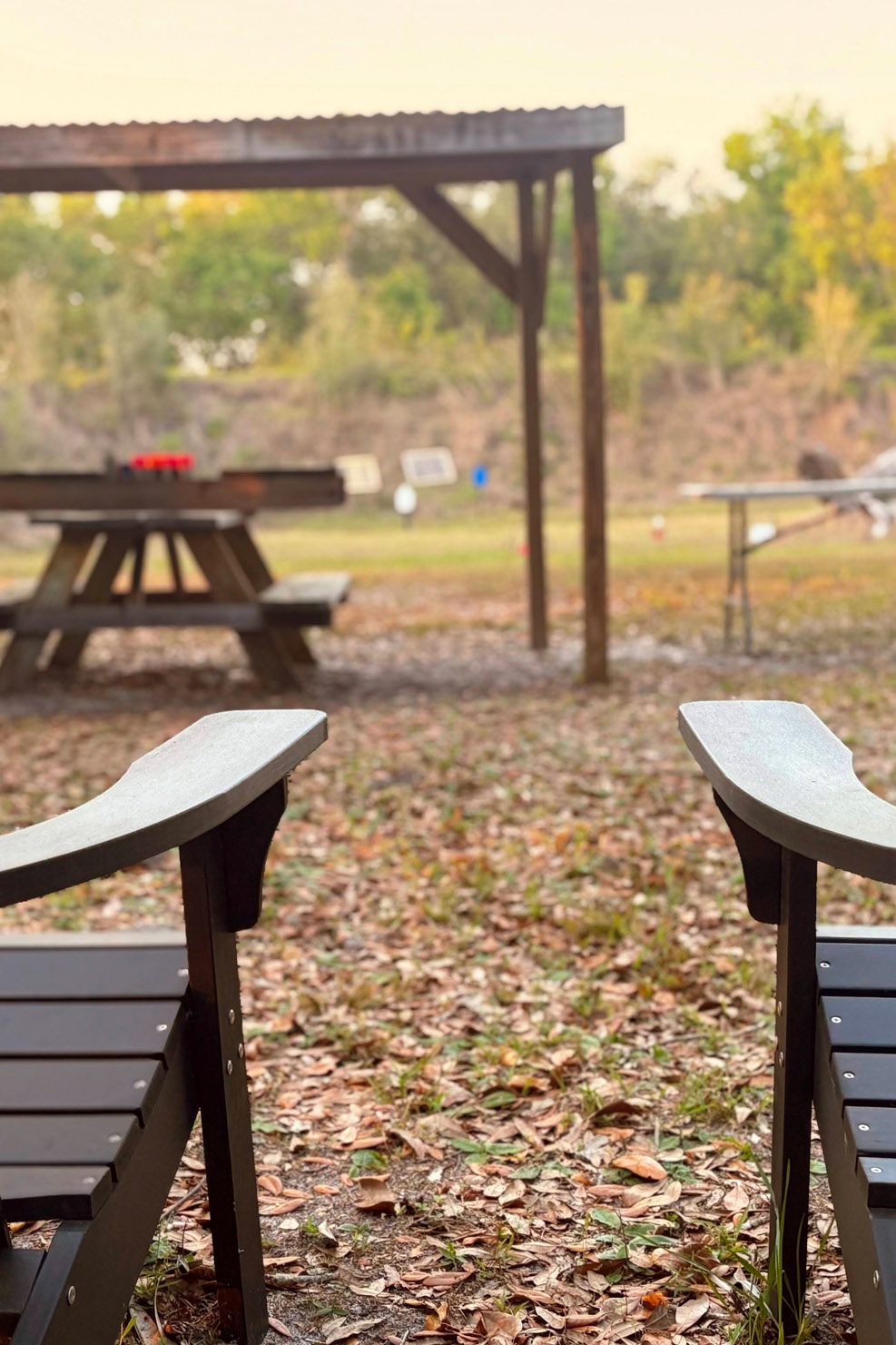 Located down the path from the Ceremony Grove is the Groom’s Cabin; an air-conditioned hideaway offering a secluded spot for groomsmen to gather, dress, have lunch, and relax before the wedding. Equipped with a refrigerator, foosball table, poker table, rocking chairs on the porch, and restrooms with a shower next door. We also have a private Shooting Range onsite that can be hired the morning of the wedding...
